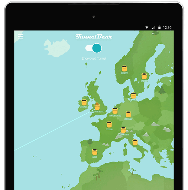 Just open the TunnelBear app, select a country, and flip the switch. Once you're connected, TunnelBear will work quietly in the background to keep your data secure.